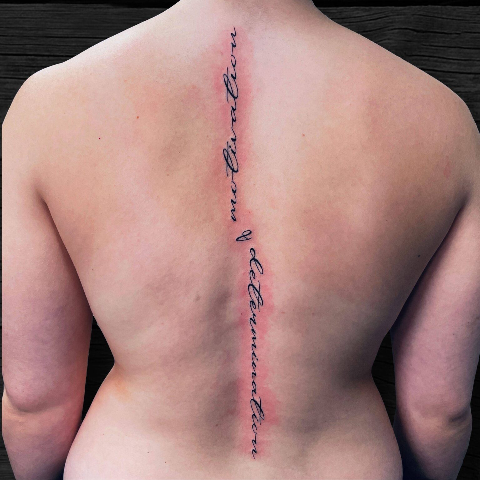 These tattoos are made of words, phrases, quotes, or names, using different fonts, styles, and languages to express a personal meaning or a sentiment.