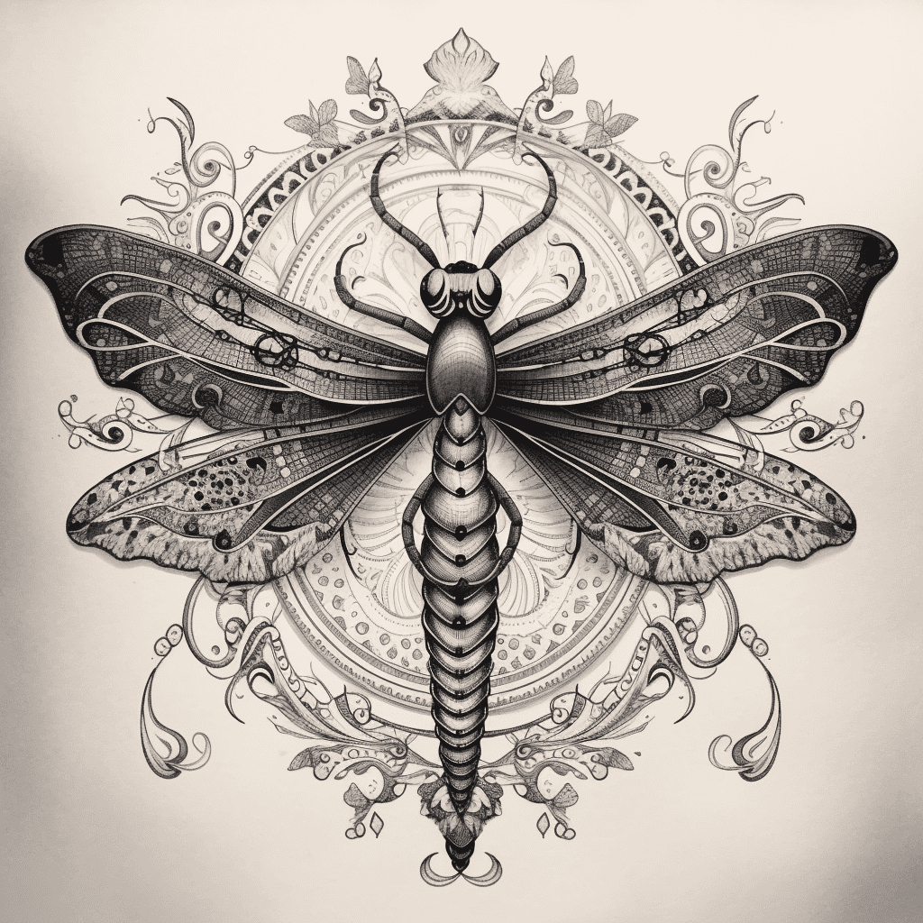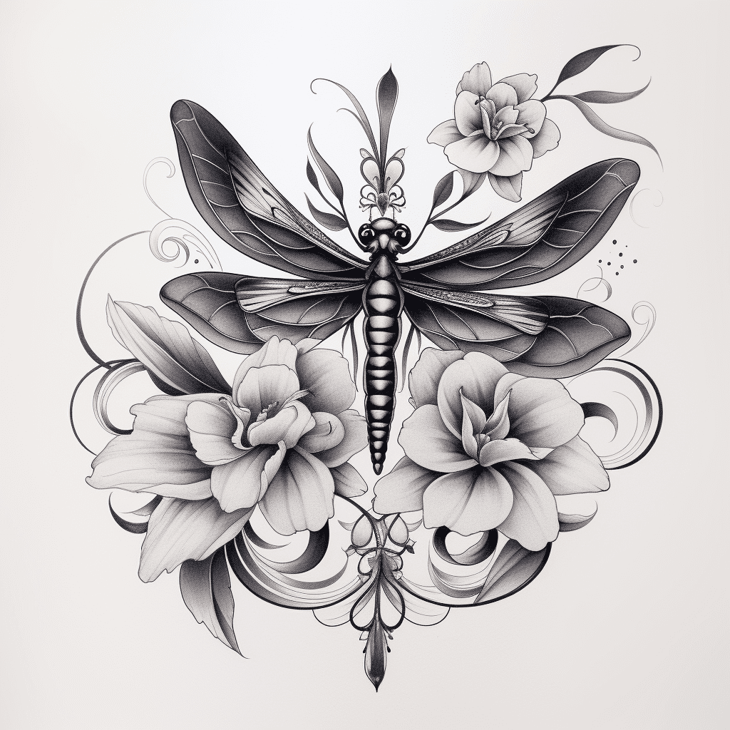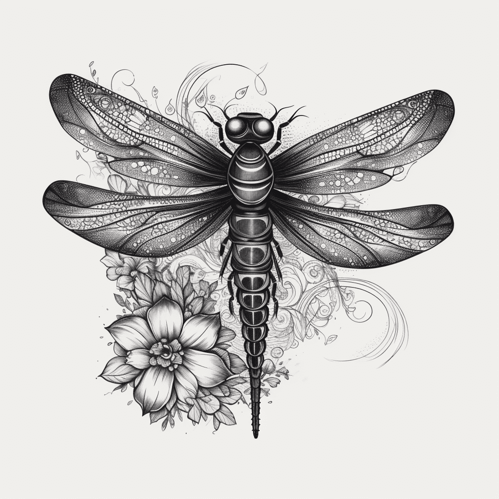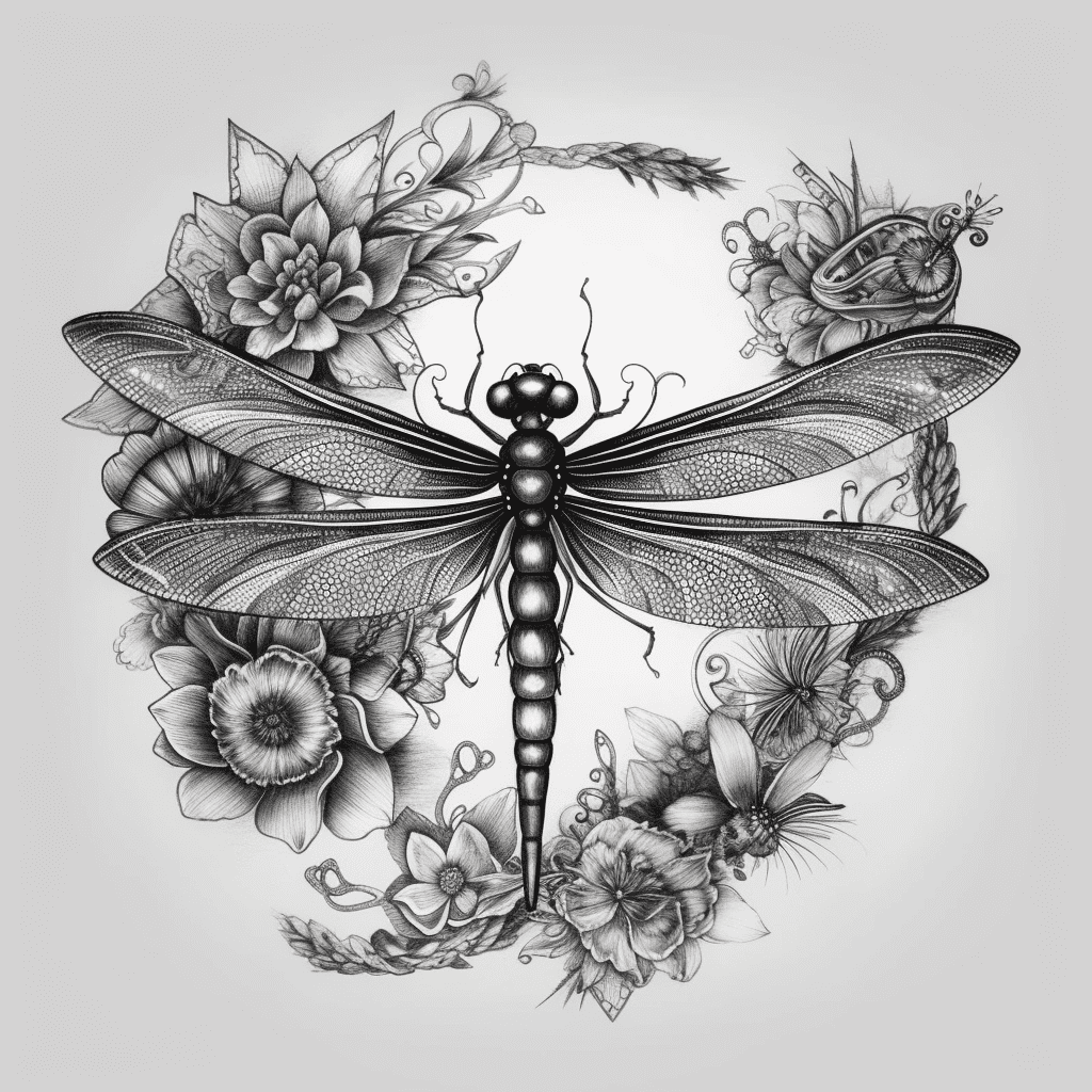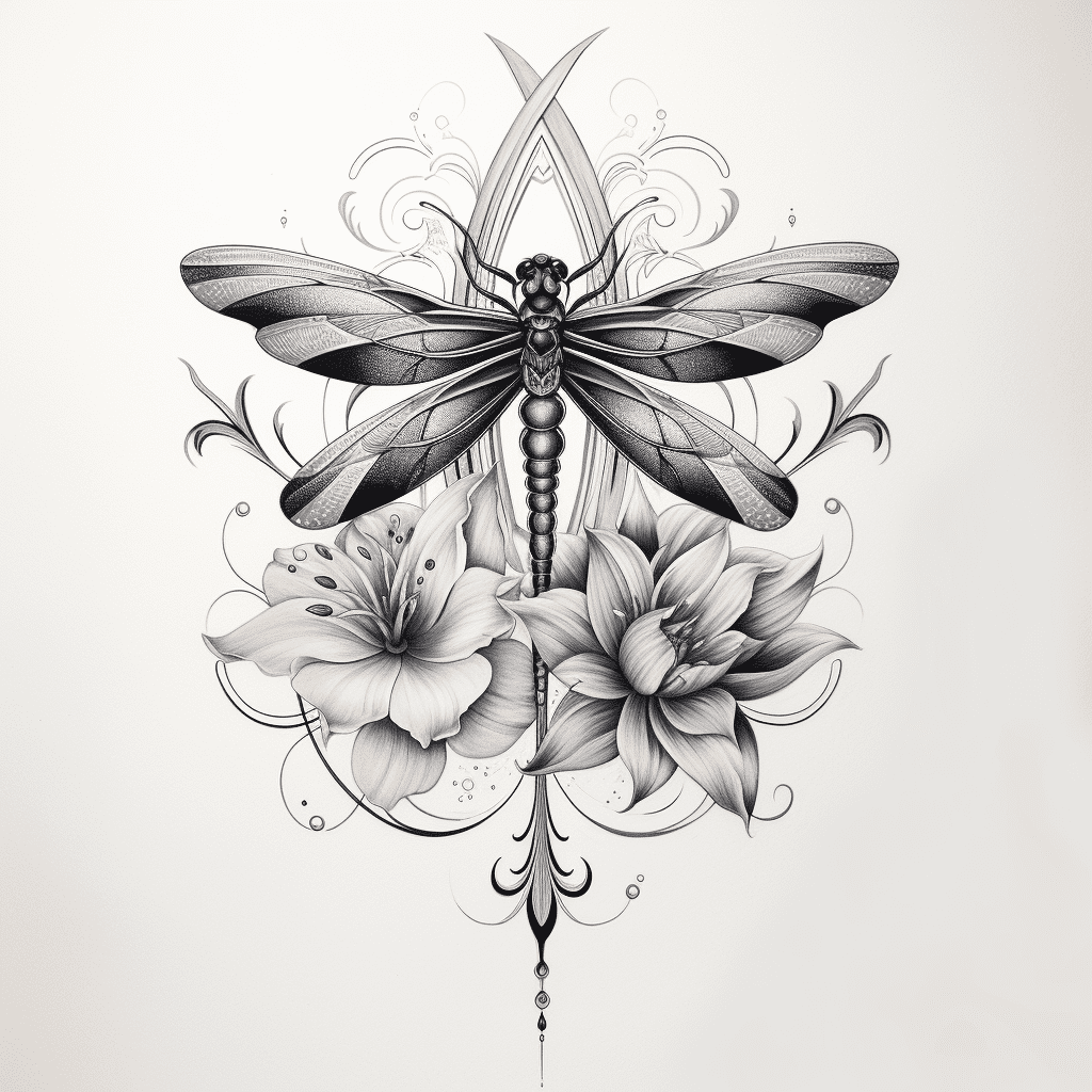 Florals such as lotus, cherry blossoms, or wildflowers complement the dragonfly’s shape and symbolism beautifully. Water elements, subtle waves, or geometric patterns can also add depth and balance to the design.